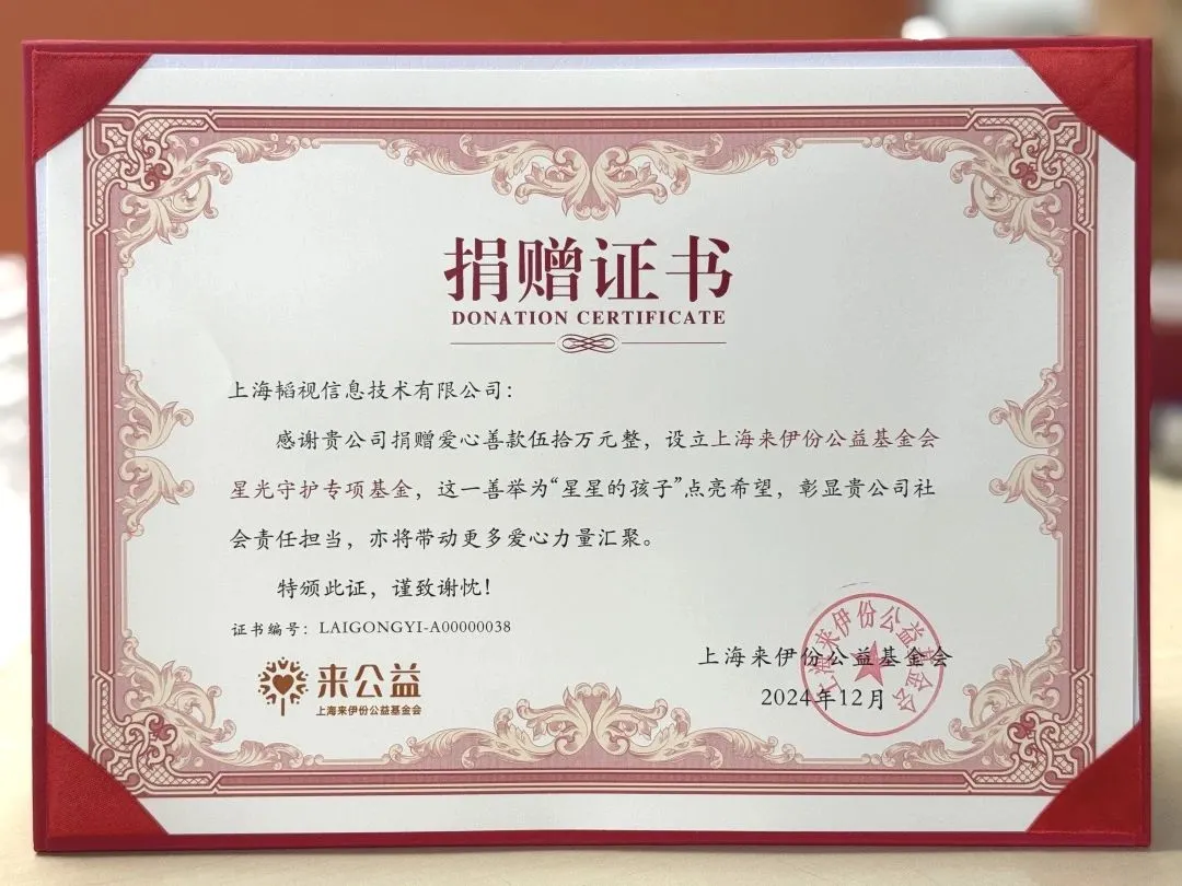 孤独症,也被称为自闭症,是一种神经发育障碍性疾病。2024年12月,爱心企业——上海韬视信息技术有限公司捐赠五十万元善款成立上海来伊份公益基金会星光守护专项基金,旨在关爱守护孤独症儿童,包括但不限于宣传科普倡导、社会融入等,提升社会对于孤独症儿童和家庭的关注、服务与支持。
